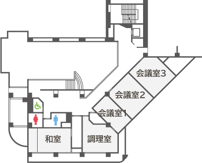 各種会議や小集会場として利用できます。会議室2・会議室3のパーティションを開けて1つの会議室として利用できます。